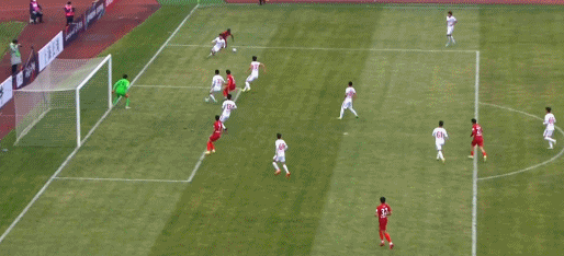 第19分钟,巴尔加斯后点头球,邢瑜将球托出横梁。
