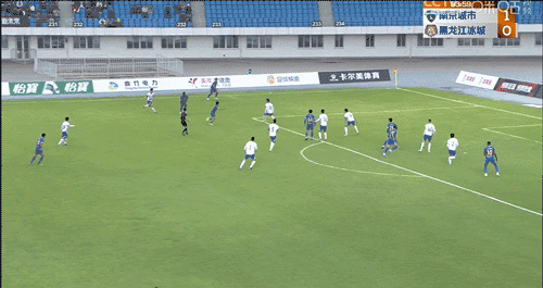 第22分钟,南京城市队从中场开始被断球,随后后防线又出现失误,幸好黄子豪及时出击将球阻拦,没让黑龙江冰城破门。