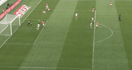 第45分钟,饶伟辉左路套上传中,茹子楠在后点迎球抽射高出!