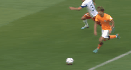 第35分钟,牟鹏飞大脚发动进攻,康瓜得球后斜塞左路,塔贝克吸引双人包夹,又把球传到另一侧,康瓜顺势右脚抽射,程月磊侧身将球封出。