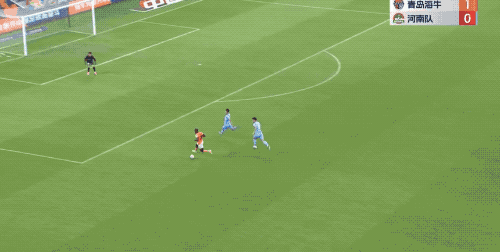 第21分钟,萨里奇开出角球,青岛海牛在禁区内抢到落点,彭欣力停球后的撩射放了高射炮。